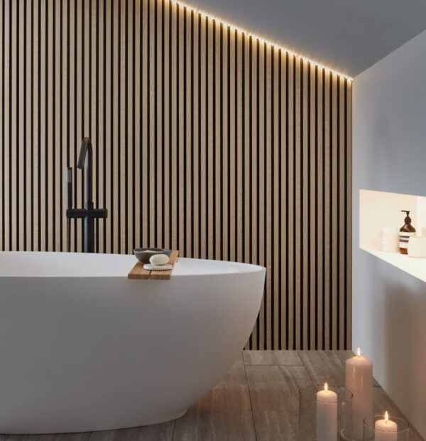 Light and airy, Natural Oak brightens up rooms with its organic Scandinavian look. Crisp, modern oak slats, with sound-dampening backing. Ideal for minimalist and eco-inspired spaces. Easy to self-install or opt for professional SitBetta installation.